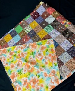 Colorful quilt, measures 70" x 66" Made by Marleen Pipho. Donated by Don Pipho.