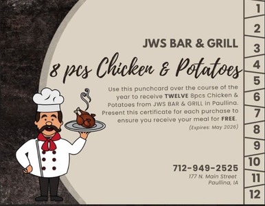 8 piece chicken and potato monthly for 12 months (expires May 2026) Donated by JWs (Paullina)