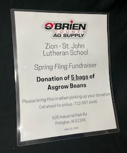 5 bags of Asgrow Bean Seed. Donated by O'Brien County Ag (Primghar)